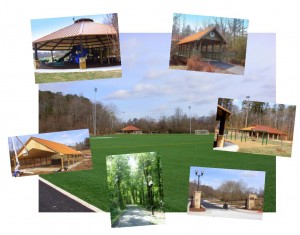 The long awaited Grand Opening of Gary Pirkle Park is March 13th at 11am. The 67 acre park features a paved, lighted 1.7 mile walking trail, 255,000 sq ft of synthetic turf fields (largest in the Southeast), several natural turf grass fields, a 90’ playground pavilion with solar power, a concession building, covered viewing pavilions and grandstands. The park has state of the art field lights, a unique covered bridge, several smaller trail bridges and a lighted vehicle bridge. The fields are configured for soccer and can be used for lacrosse and football. An upper parking lot is being finished and will provide access to the fields, bathrooms and grandstands.